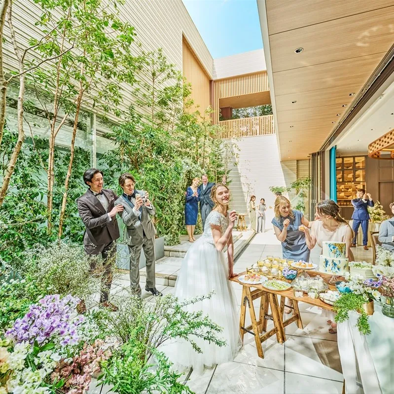 【大阪梅田駅すぐ!都心のリゾートを貸切】梅田駅徒歩5分の場所にあるアーバンリゾート邸宅。都心にいながら自然を感じられる邸宅を、結婚式当日はおふたりとゲストだけで貸切にできるのが最大の魅力!